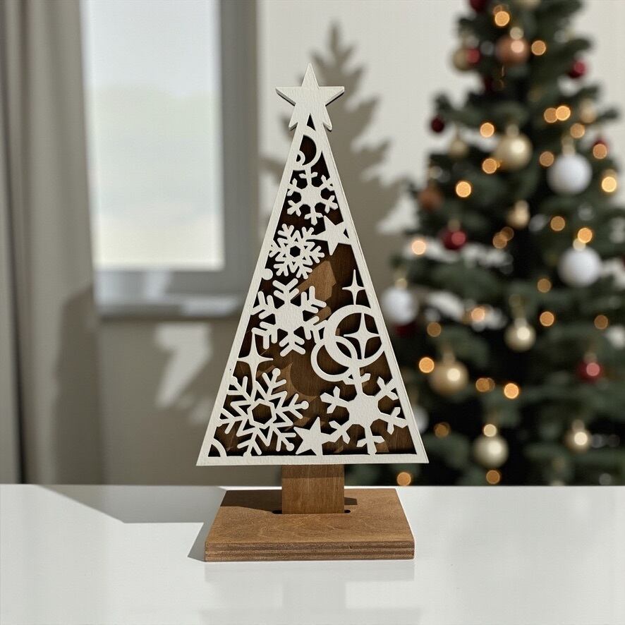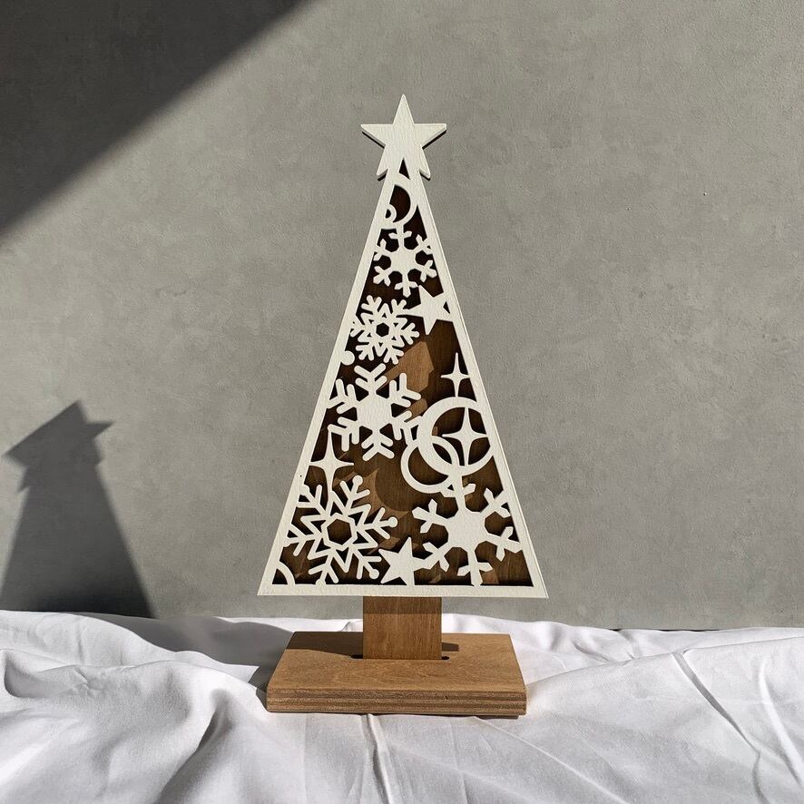 雪の結晶デザインの木製クリスマスツリー | 卓上 北欧 韓国 ナチュラルインテリア ギフトにも 大人かわいい おしゃれ コンパクトco3