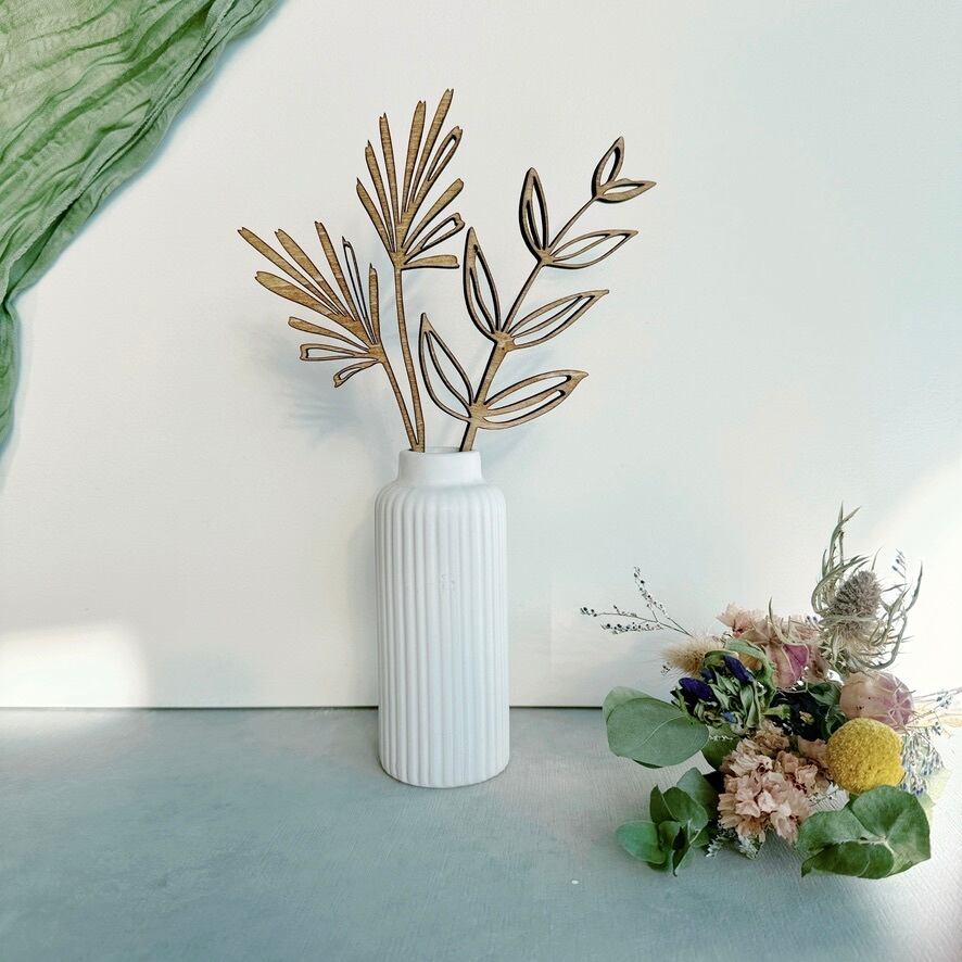 レーザーで繊細に切り出した、枯れない木のリーフ。
