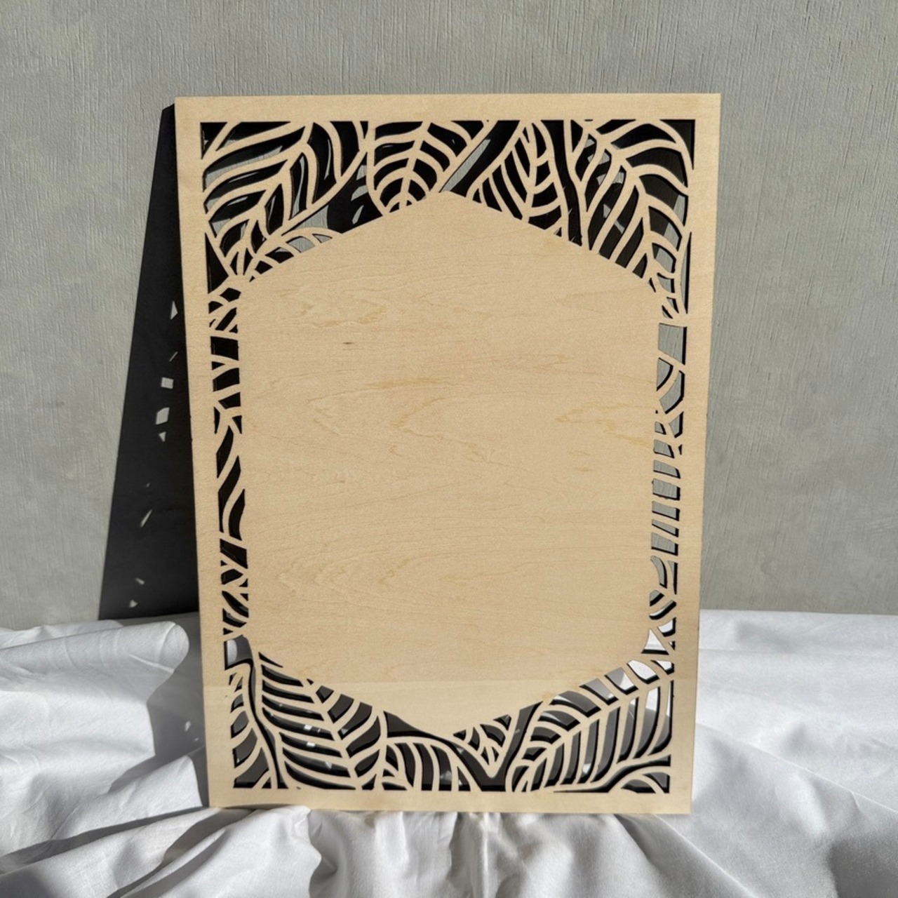 ・レーザーカットによる繊細なボタニカルフレーム