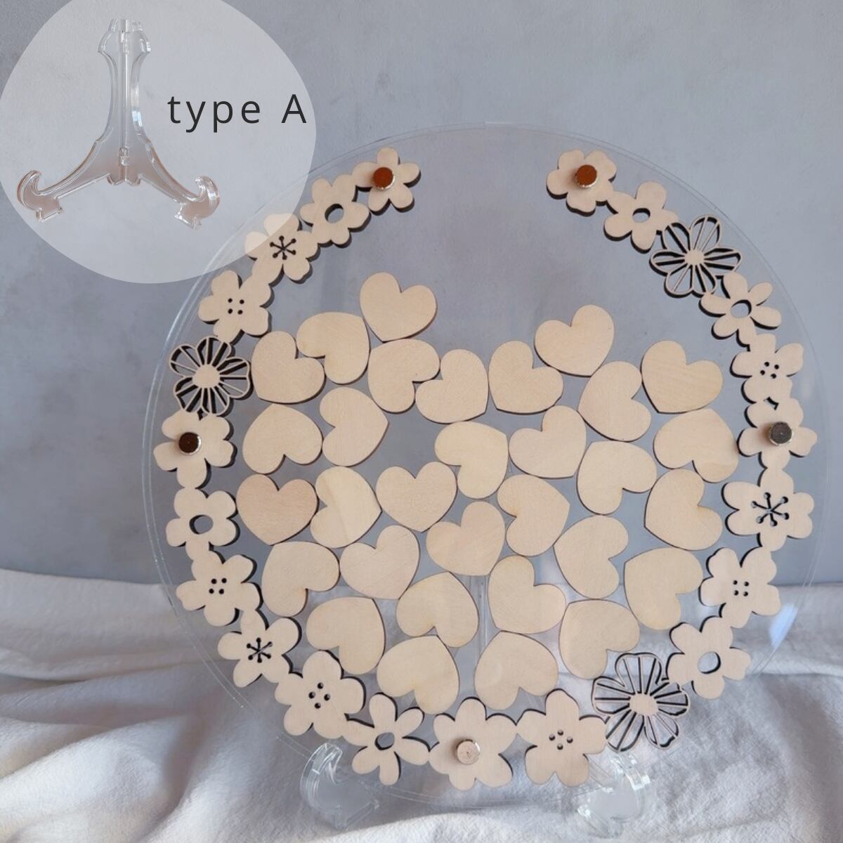 スタンド付きのためウェルカムスペースにそのまま置いて使うことができ、ナチュラルな結婚式やシンプルな会場装飾にも馴染みます。