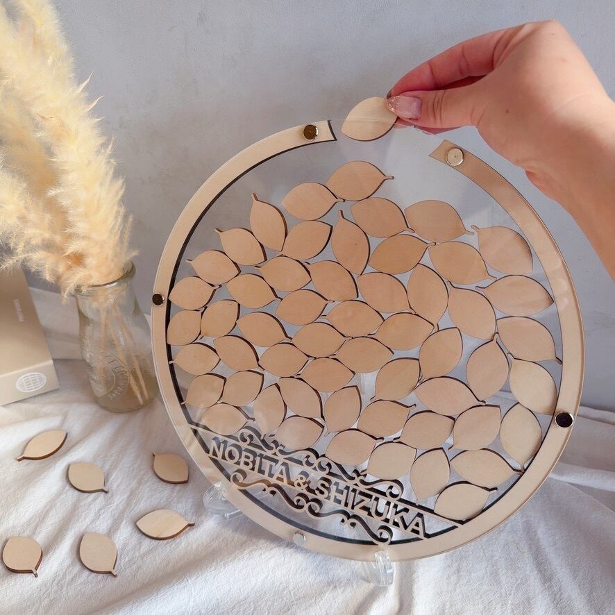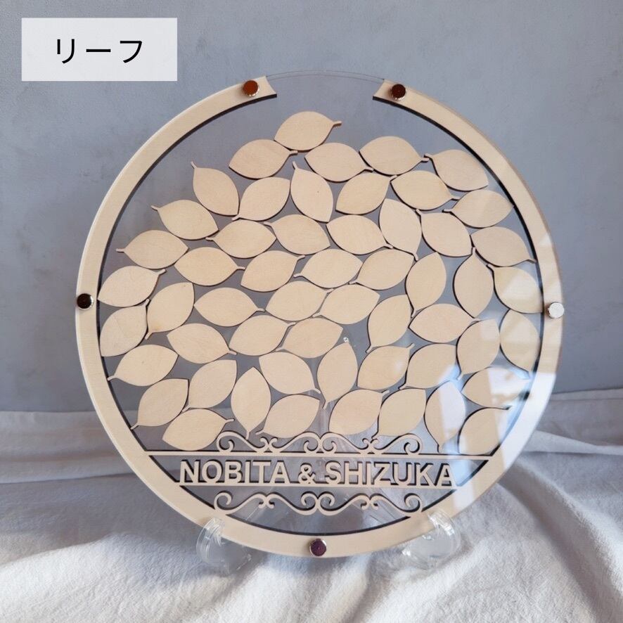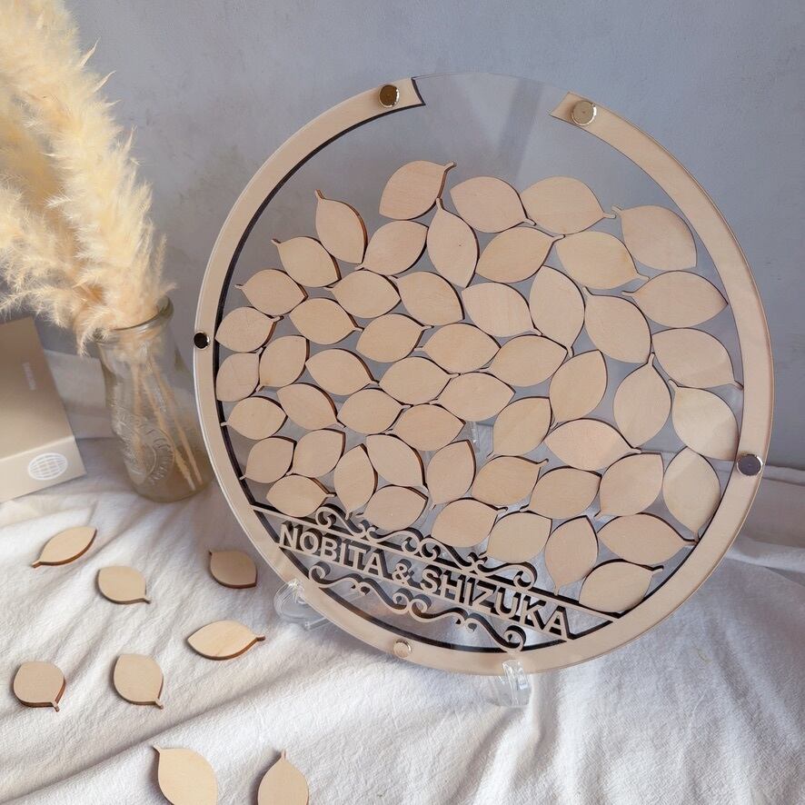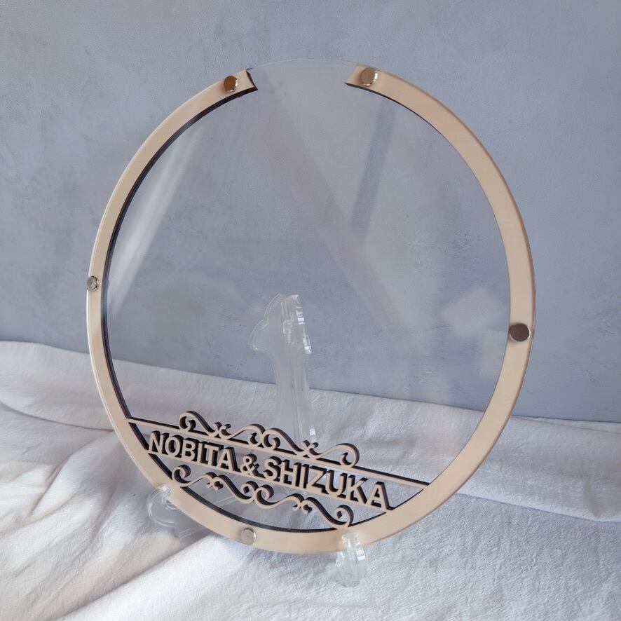 スタンド付きのためウェルカムスペースにそのまま置いて使うことができ、ナチュラルな結婚式やシンプルな会場装飾にも馴染みます。