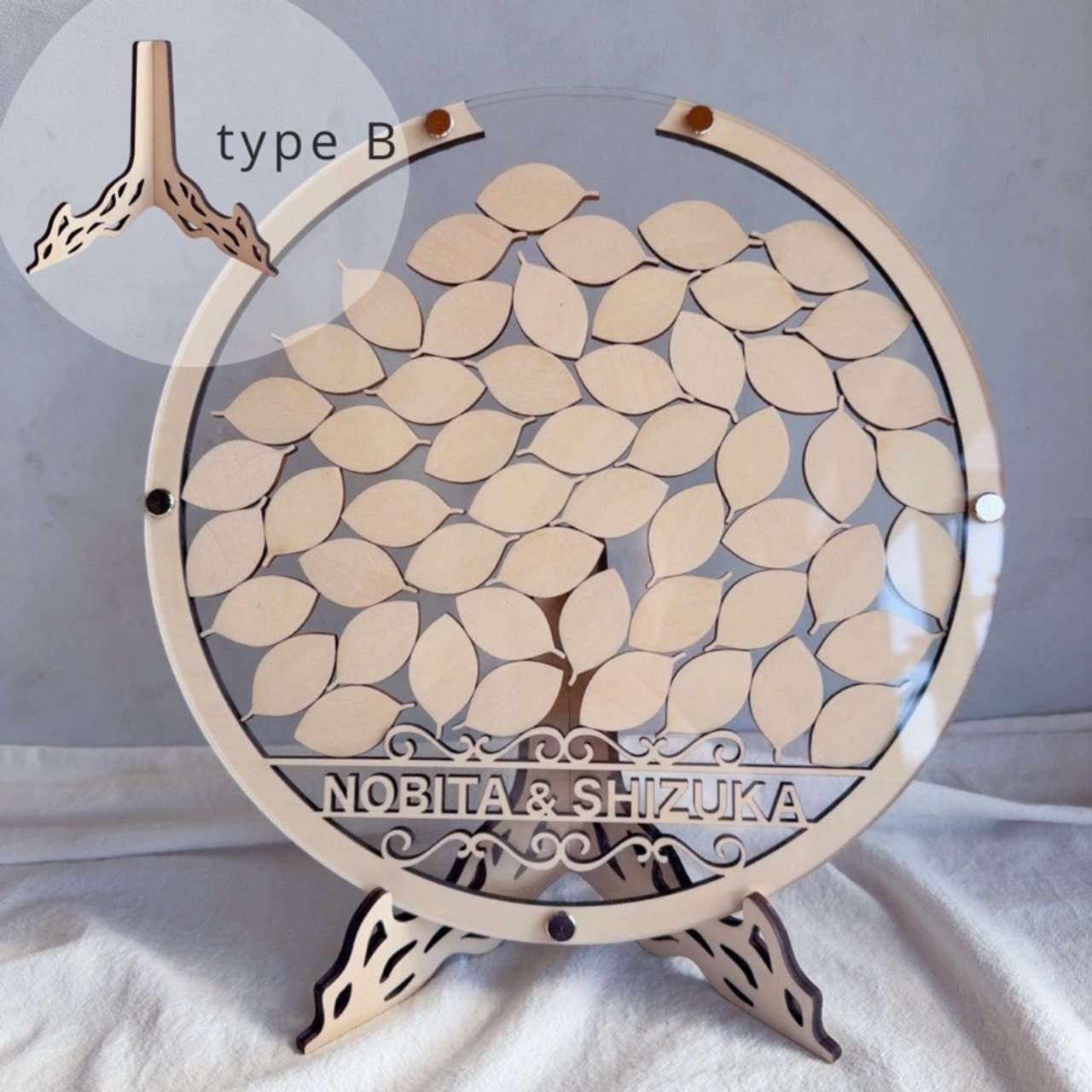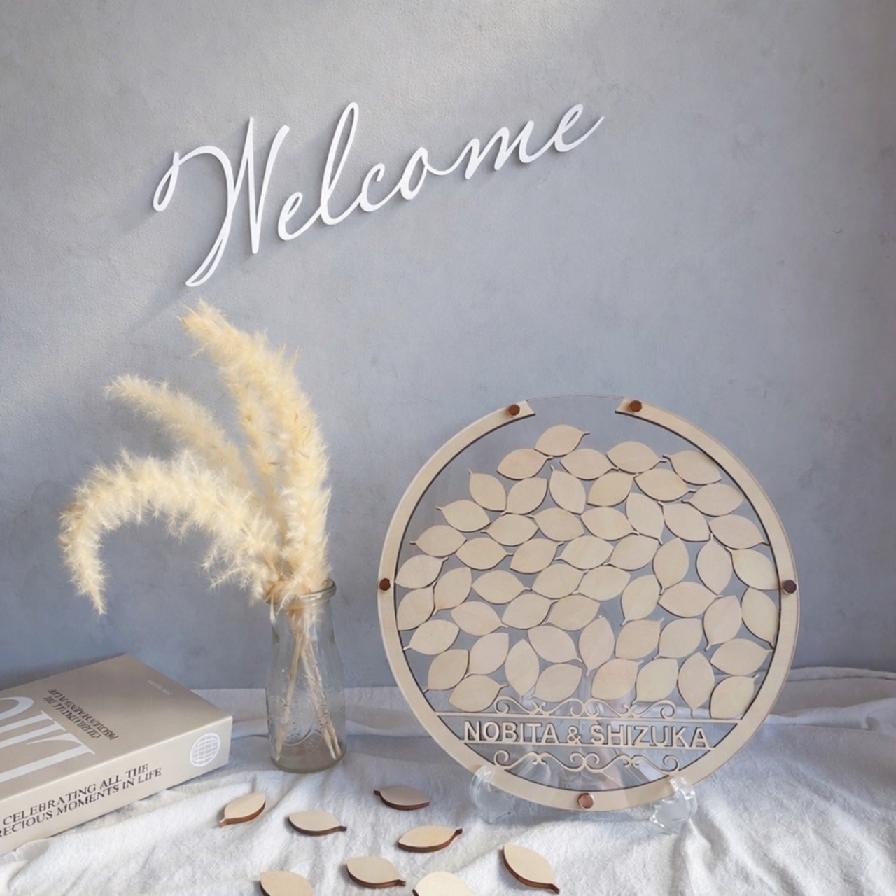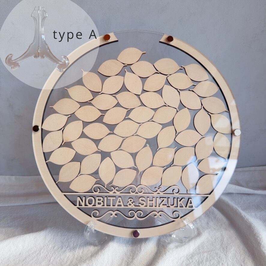 スタンド付きのためウェルカムスペースにそのまま置いて使うことができ、ナチュラルな結婚式やシンプルな会場装飾にも馴染みます。