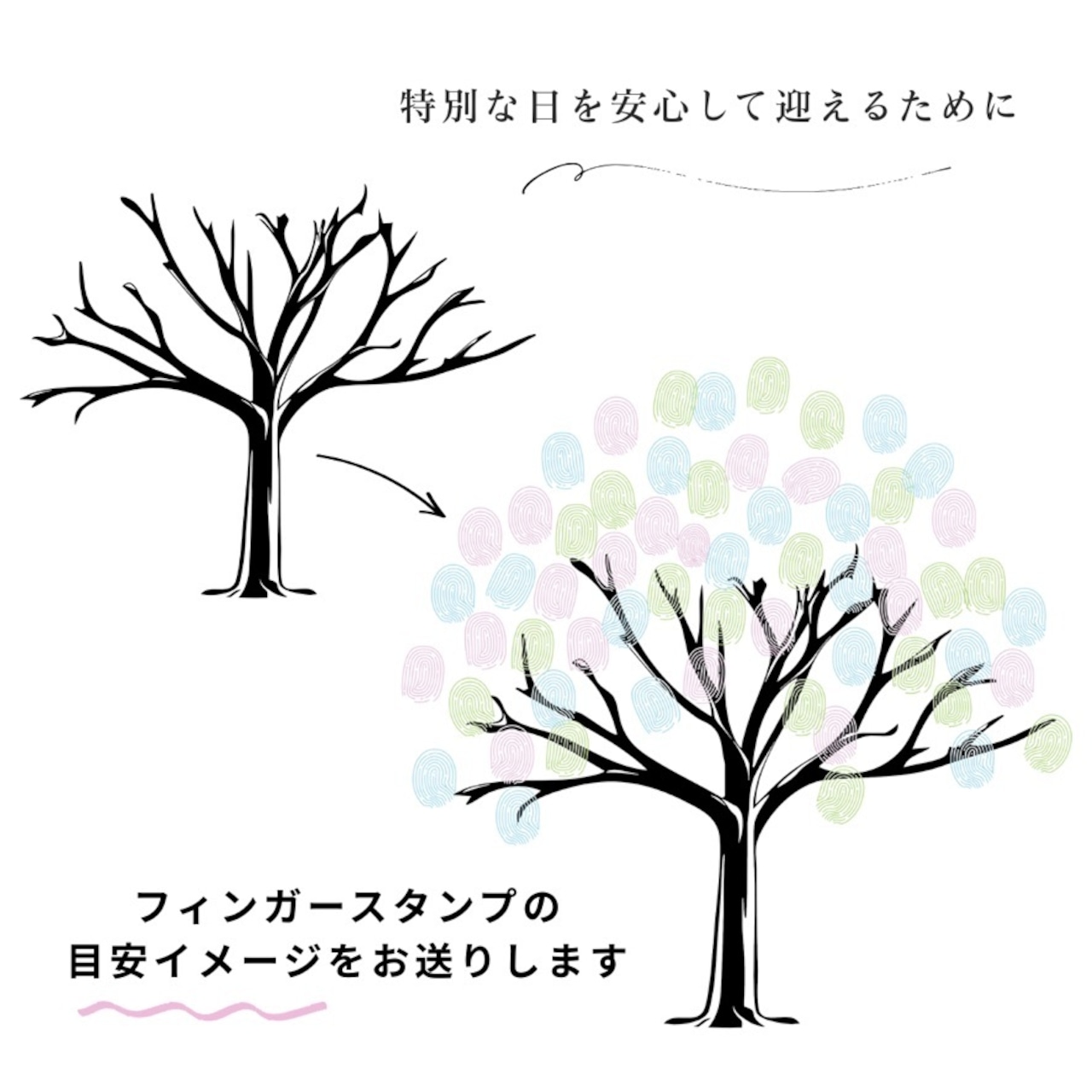 イラストやウェディングツリーの彫刻は、お選びいただく木材のサイズやデザイン構成によって、表面に配置できない場合がございます。