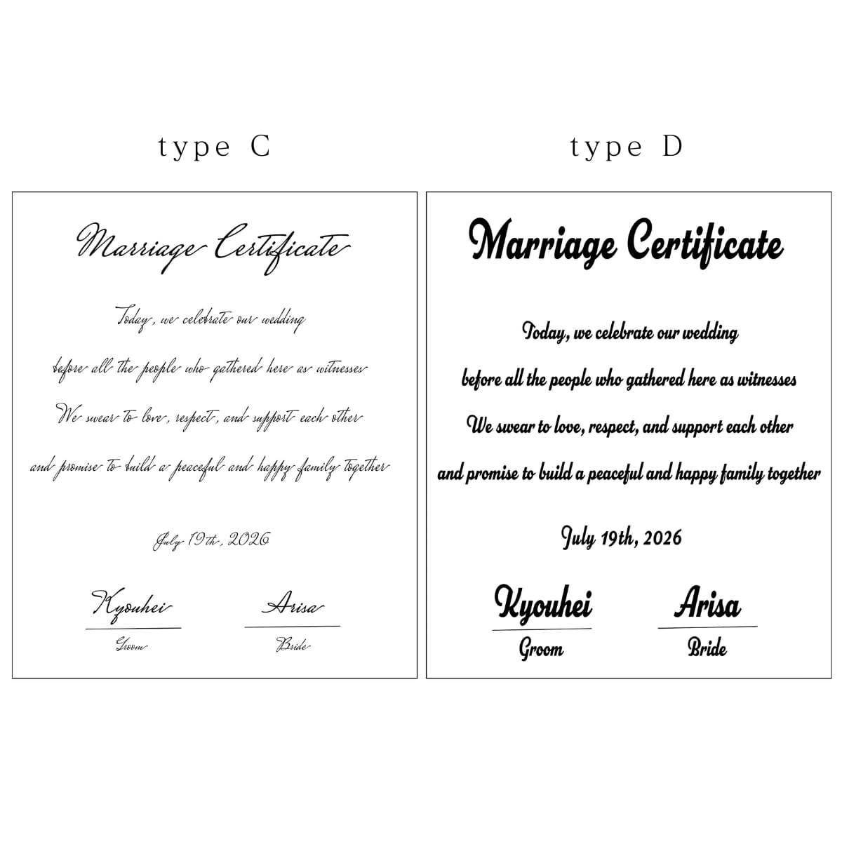cocoro designの「木の結婚証明書」。