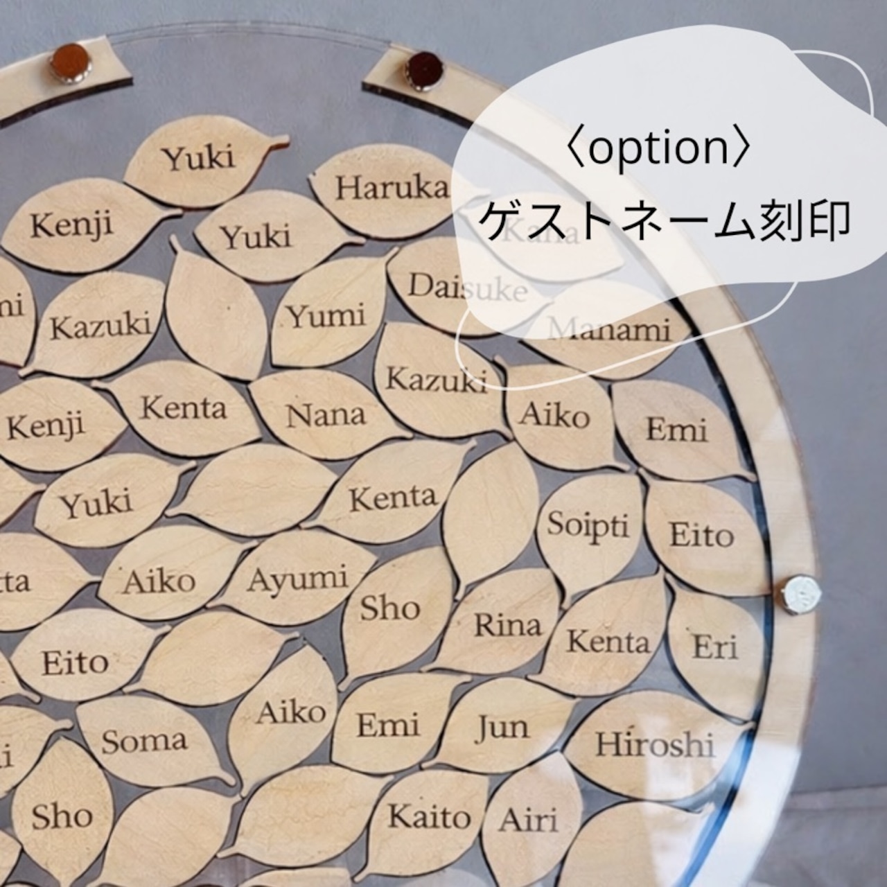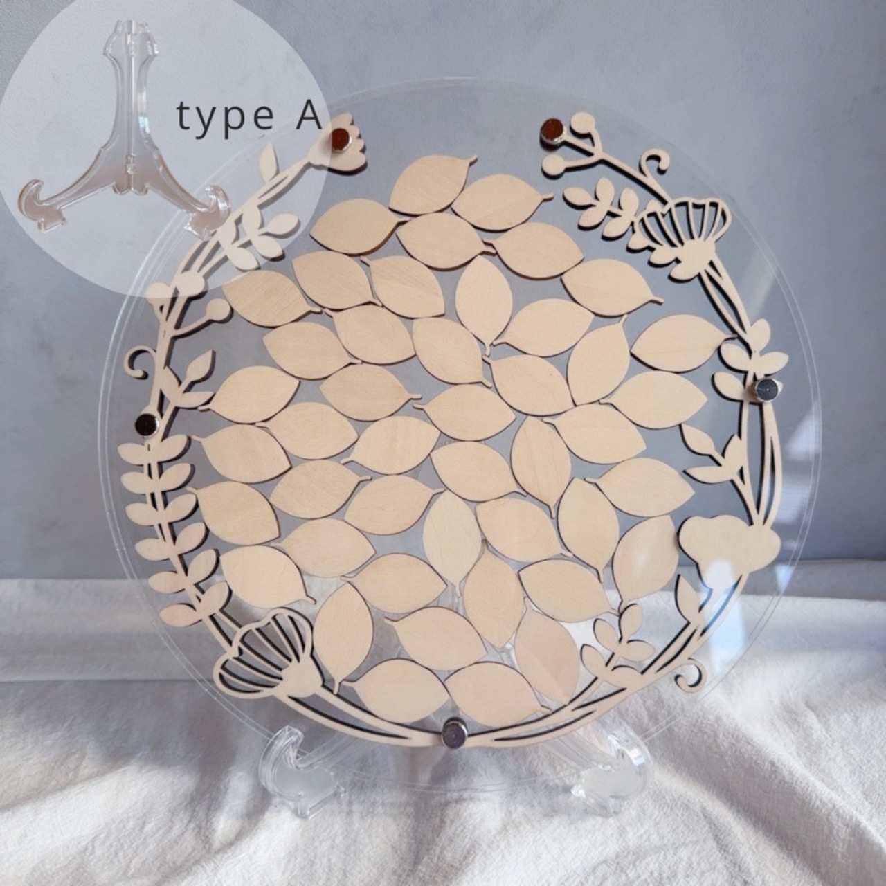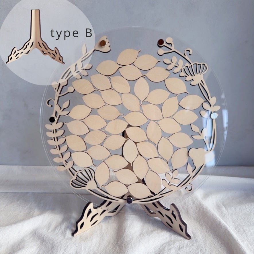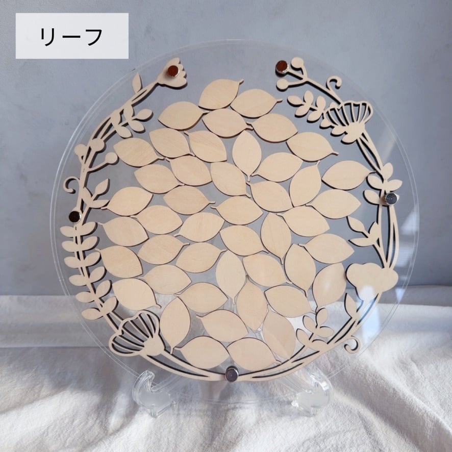 スタンド付きのためウェルカムスペースにそのまま置いて使うことができ、ナチュラルな結婚式やシンプルな会場装飾にも馴染みます。