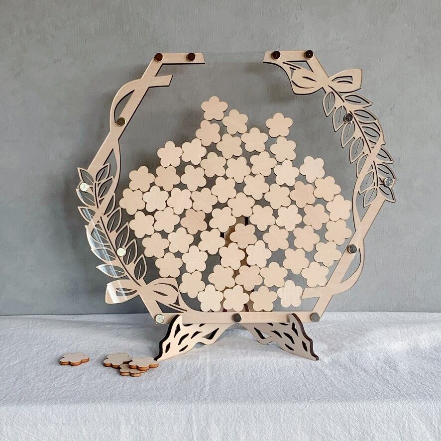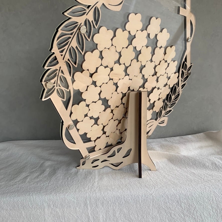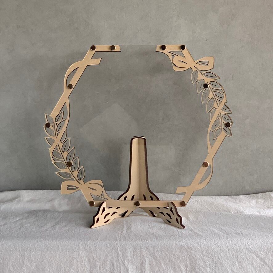 スタンド付きのためウェルカムスペースにそのまま置いて使うことができ、ナチュラルな結婚式やシンプルな会場装飾にも馴染みます。