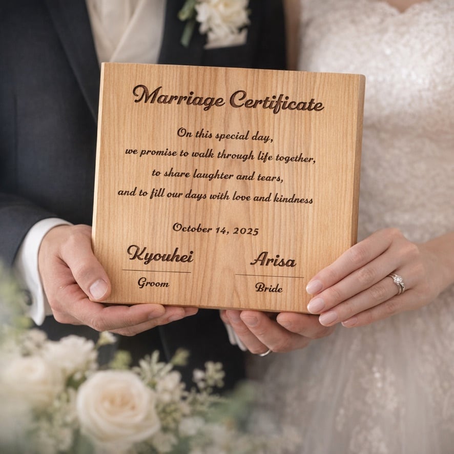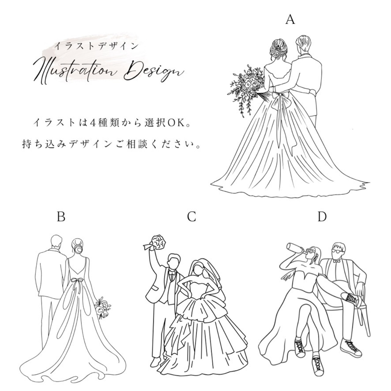 イラストやウェディングツリーの彫刻は、お選びいただく木材のサイズやデザイン構成によって、表面に配置できない場合がございます。