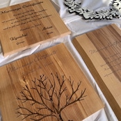イラストやウェディングツリーの彫刻は、お選びいただく木材のサイズやデザイン構成によって、表面に配置できない場合がございます。